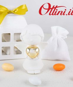 Gli Angeli sono i custodi invisibili che ci proteggono, ci confortano, ci seguono in ogni istante della nostra vita. Gli angeli sono i nostri cari, i nostri amici migliori, quelli che ci sono sempre per noi. A loro dedichiamo questa linea davvero spettacolare. L’Angelo in piedi con Cuore smaltato color Oro è realizzato in porcellana bianca con finitura satinata. È completo della bellissima scatola a forma di lanterna con finitura esterna “tela bianca” perlata.