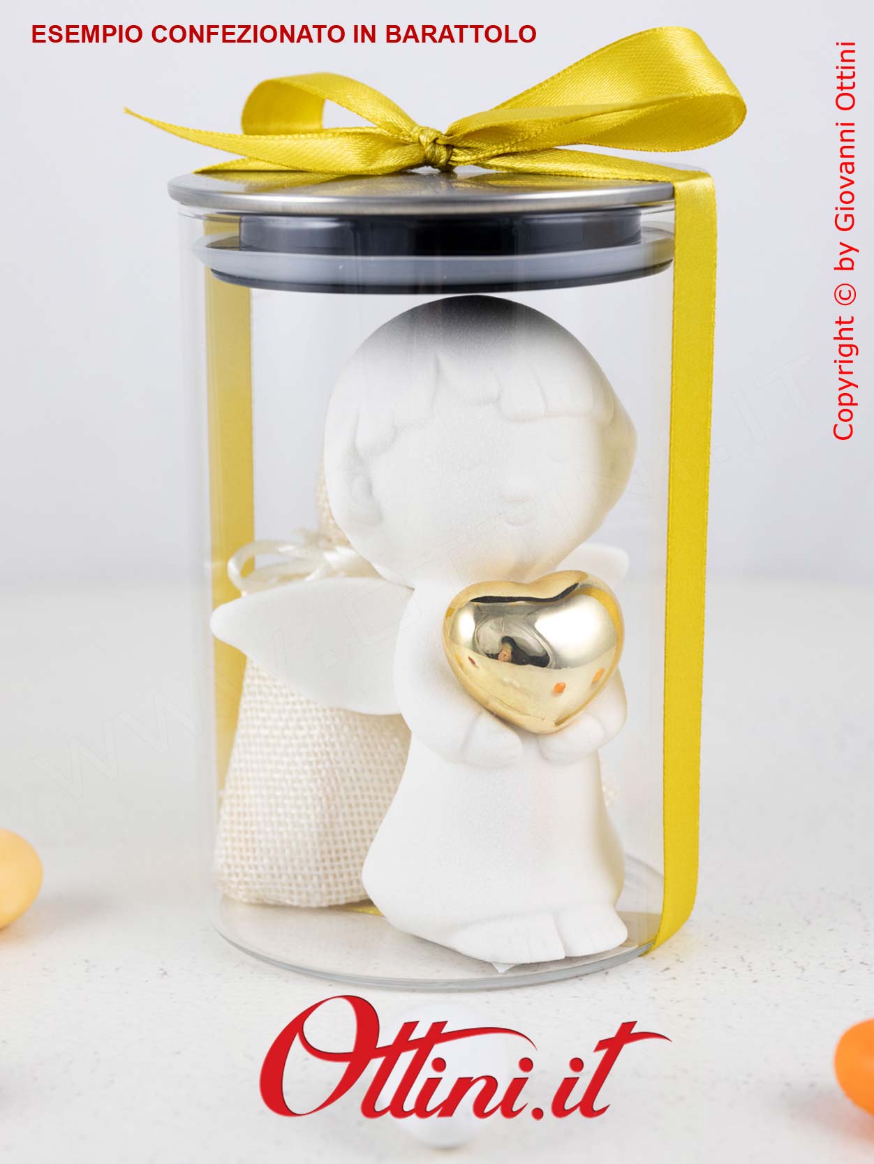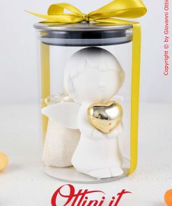 ALTERNATIVA: Questo Angelo può essere confezionato anche nel bellissimo barattolo in vetro con tappo di metallo con guarnizione in silicone per una chiusura ermetica eccezionale. Il Barattolo costituisce un “regalo nel regalo” in quanto potrà essere utilizzato per gli alimenti in cucina. Il costo del barattolo è da aggiungere, ma nel caso foste intenzionati ad acquistarlo, contattateci perchè vi scaleremo il costo della scatola lanterna che è già compresa con il prodotto.