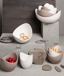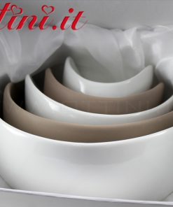 Set Antipastiera formata da cinque ciotole in ceramica color panna e sabbia.