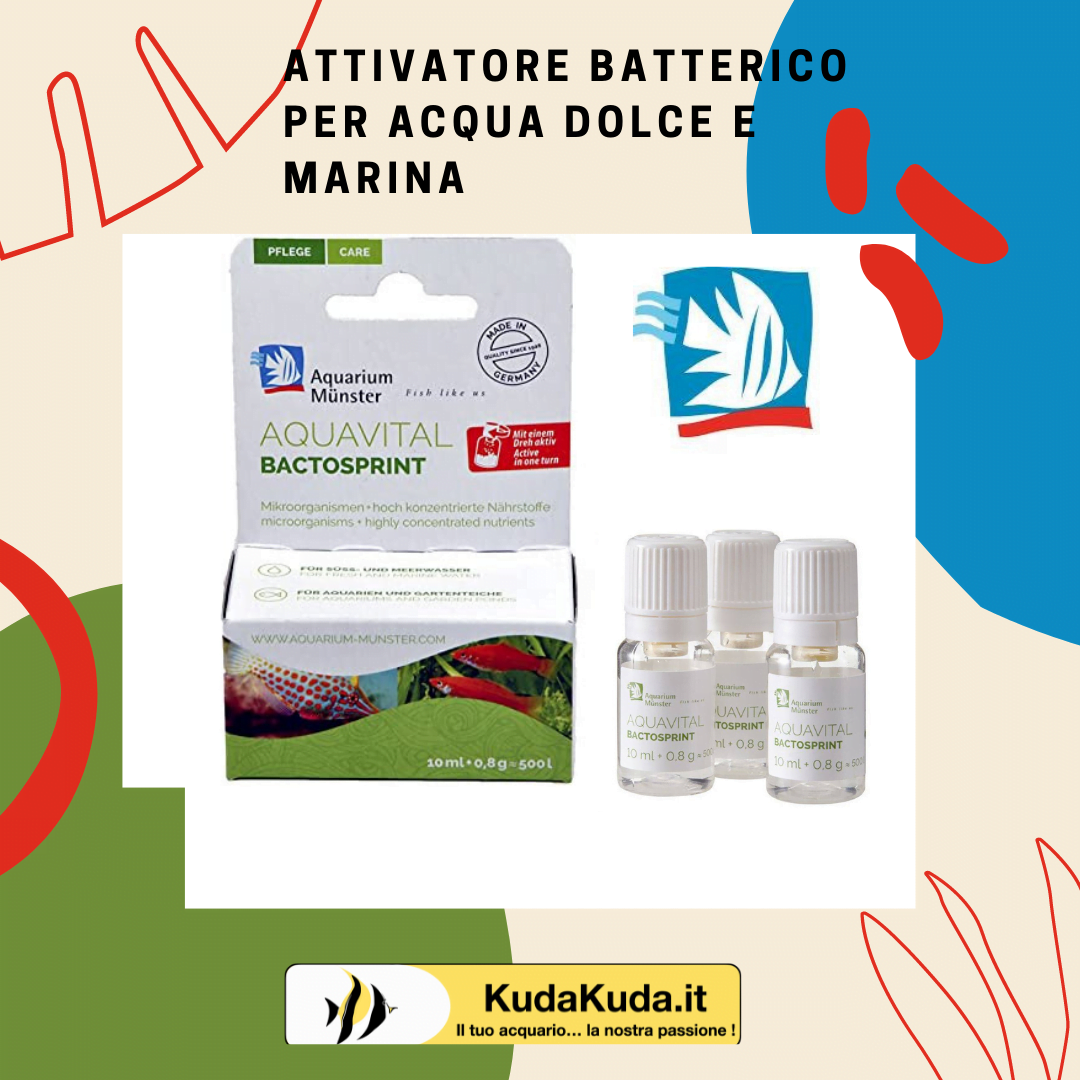 Bactosprint attiva l’ ecosistema in maniera più veloce e rapida rispetto agli altri prodotti (accelera la fase di set-up) ed è ideale anche in seguito a cambi d’ acqua parziali, in seguito ad un trattamento farmacologico e in presenza di uno squilibrio nell’ ecosistema (eccesso di ammoniacao e/o nitriti).