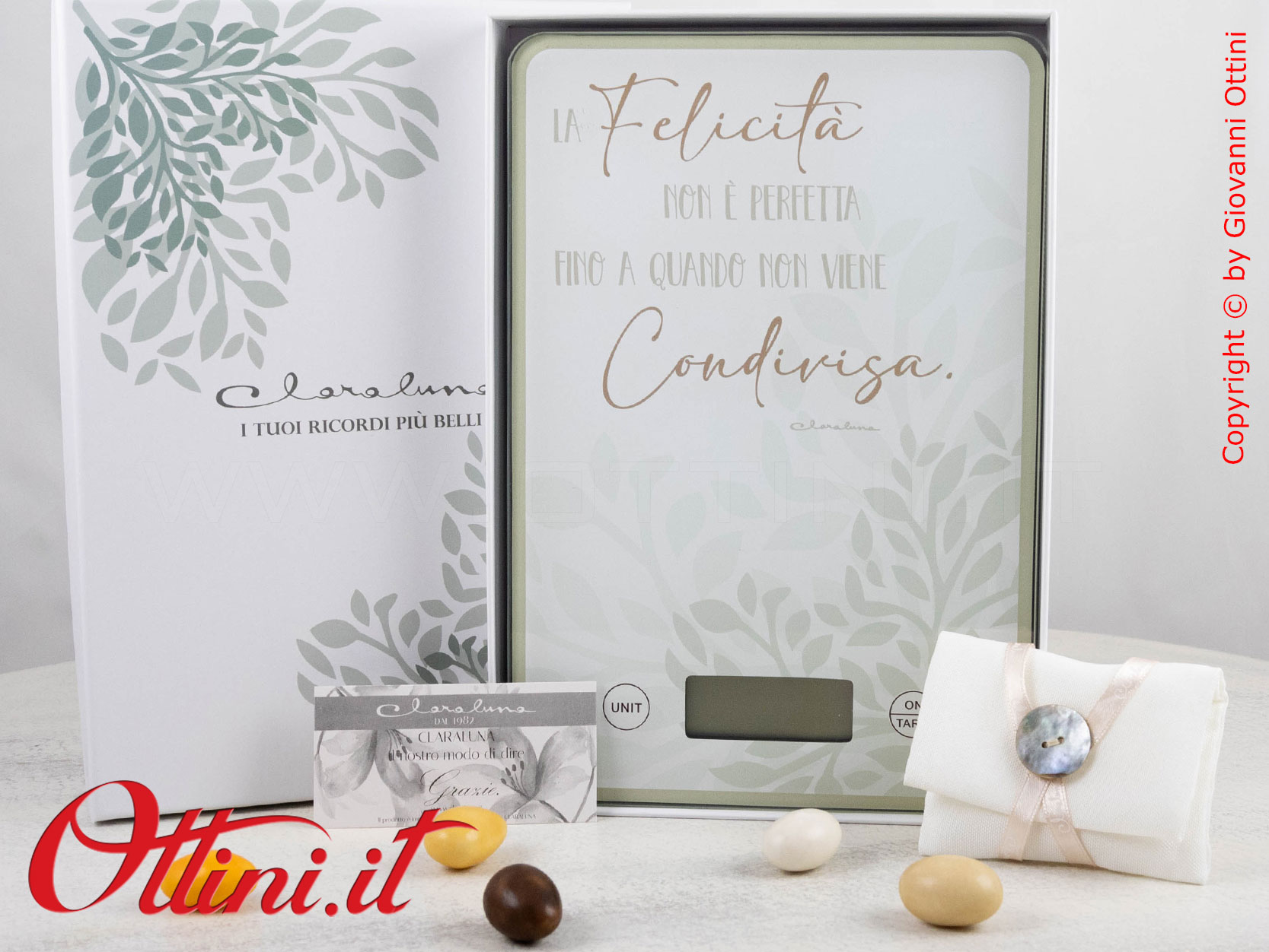 ATTENZIONE: le bomboniere come la Bilancia con Decoro Cuore Verde – 25021V Claraluna vengono imballate con estrema cura da parte nostra. Tuttavia è possibile che durante il trasporto, il corriere possa danneggiarle per una infinita serie di ragioni. State tranquilli perché la merce viaggia assicurata e in caso di danno siamo qui per sostituire gratuitamente le rotture, ma dovete solo seguire una sola regola: al ricevimento, prestare attenzione all’incolumità del collo e opponete sempre “RISERVA DI CONTROLLO”, specificando eventualmente il danno (rumore di rottura, cartone schiacciato, ammaccato, ecc). L’autista è OBBLIGATO ad accettare la riserva. Se non opponete la Riserva, e dovessero risultare rotte, diventa problematico far valere l’assicurazione e procedere con la sostituzione.