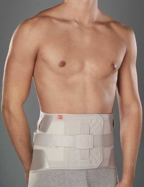 Busto ortopedico alto con tiranti a trazione facilitata per la stabilizzazione e lo scarico del rachide lombare