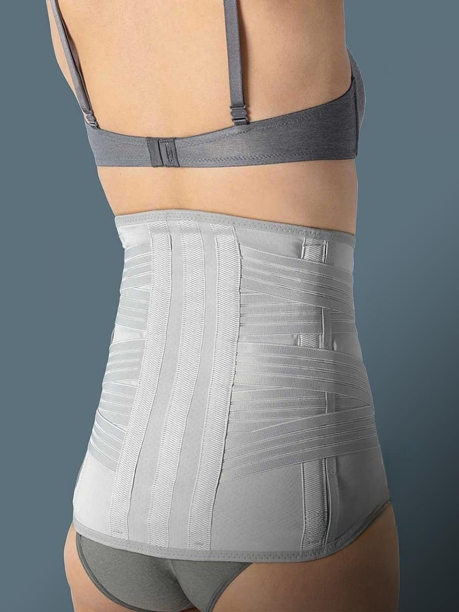 Busto ortopedico elastico alto, per la stabilizzazione e lo scarico del rachide lombare, con pelotte rigide termoformabili