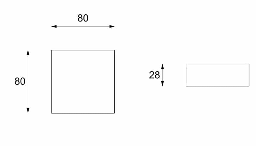 Misure coffee table: L 80 cm x P 80 cm x H 28 cm