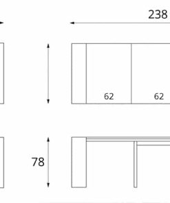 - L 120 cm X P 52 cm X H 75 cm allungabile fino a 238 cm (con 3 allunghe da 62 cm)