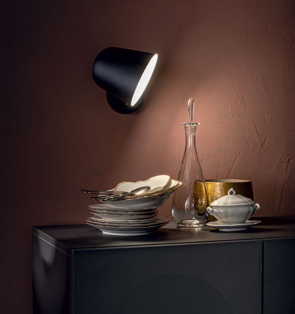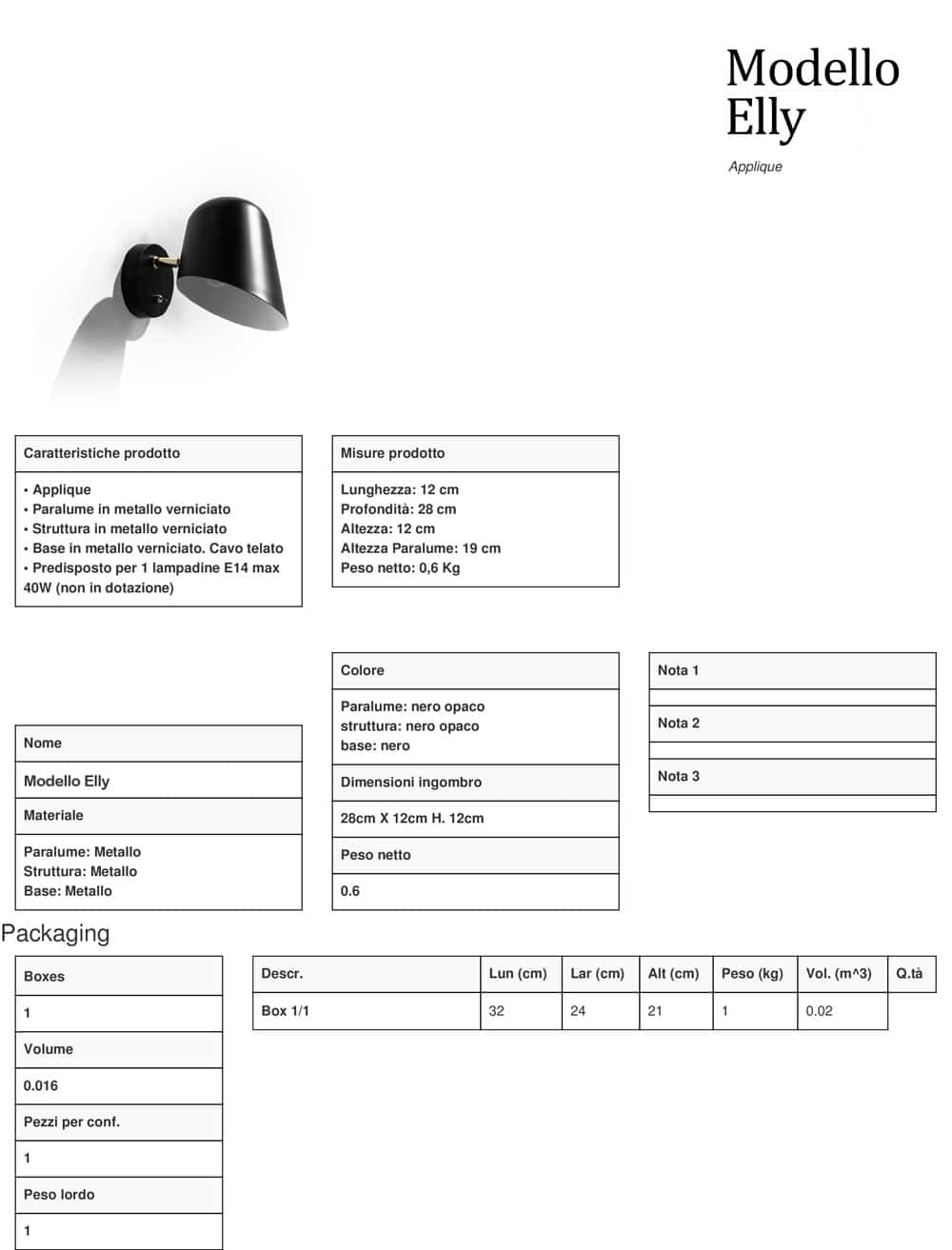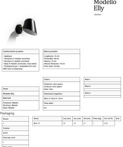 Applique Paralume in metallo verniciato, Struttura in metallo verniciato, Base in metallo verniciato. Cavo telato e Predisposto per 1 lampadine E14 max 40W (non in dotazione).