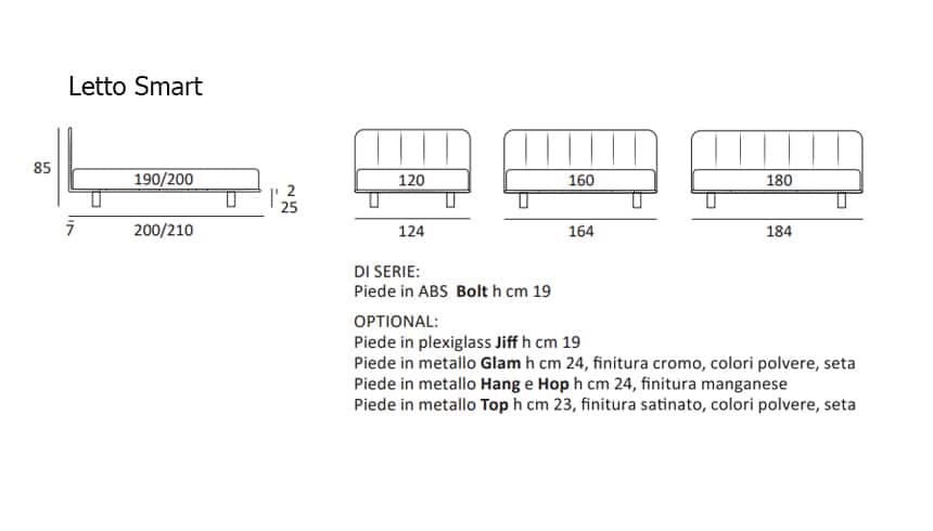 Letto Smart testata imbottita e piede alto