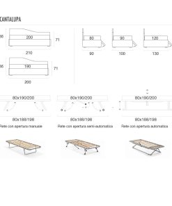 - Misura Rete L 180 x P 190/200 – Misura Totale Letto L 184 x P 200/210 x H 85 cm